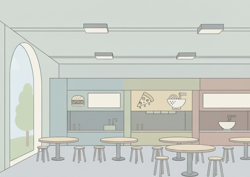 そのスーパーは規模は小さいですが、フードコートがあります。