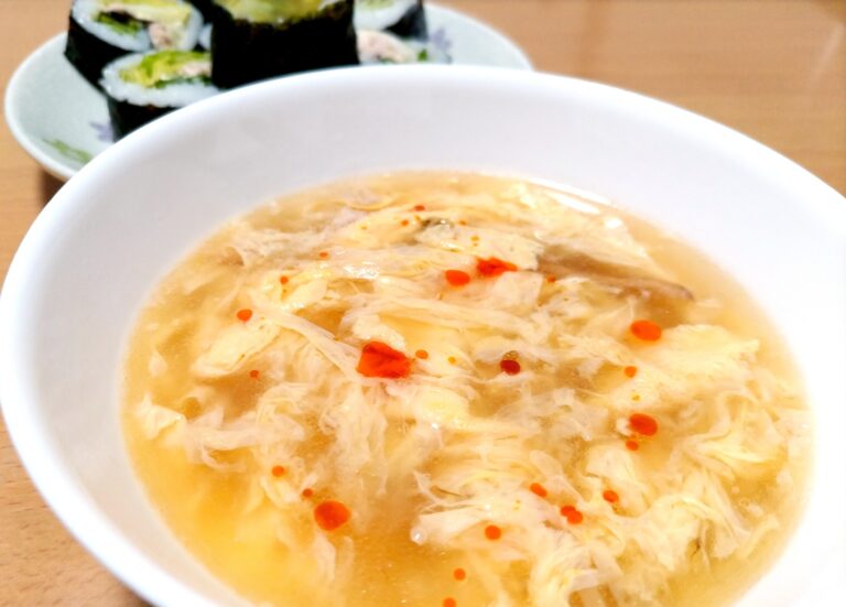 さすがにそれだけでは後でお腹が減りそうなので、中華スープを。(卵を加えるだけの物)